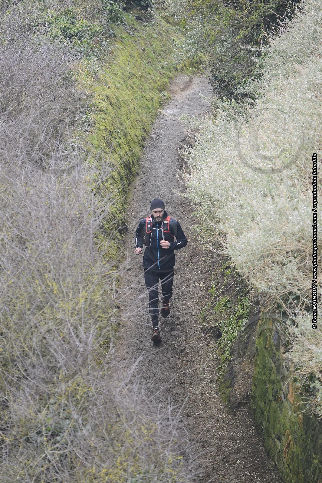 Passage sur le 45km à Etables-sur-Mer au pied du sémaphore. TRAIL GLAZIG 2015, 45 et 25km. 14° edition. Plourhan (22), le dimanche 15 février 2015. Photo: © Yves MAINGUY